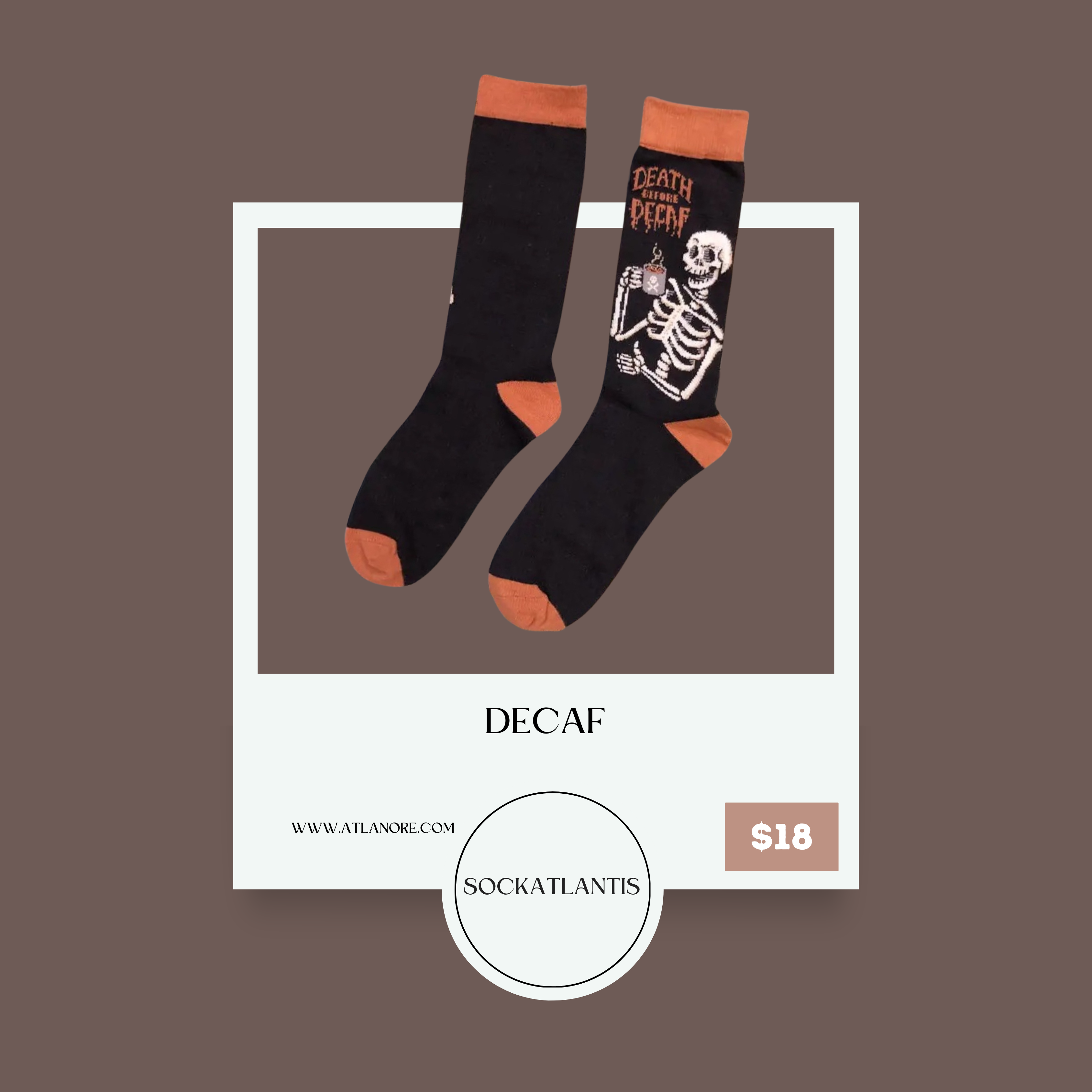 Indulge in the irony of 'Death by Decaf' socks, where caffeine meets humor in a playful twist. Perfect for coffee lovers with a sense of wit, these socks add a dash of fun to your everyday style. Embrace the caffeine-free chaos with every step.