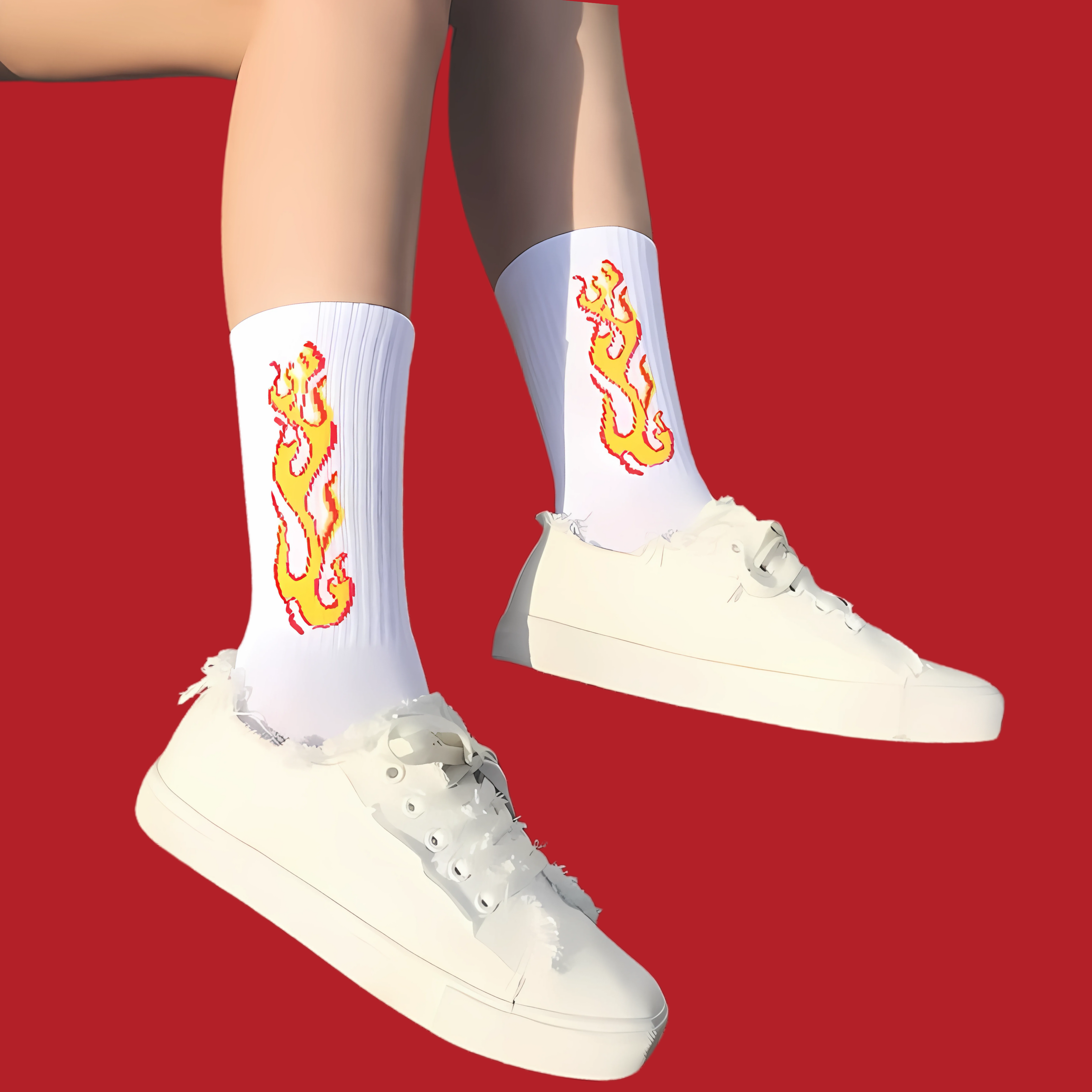 Introducing our 'Flame Sock': ignite your style with a burst of vibrant warmth. Crafted with quality materials and eye-catching hues, these socks add a touch of fiery flair to any outfit. Step out with confidence and let your fashion sense blaze bright.