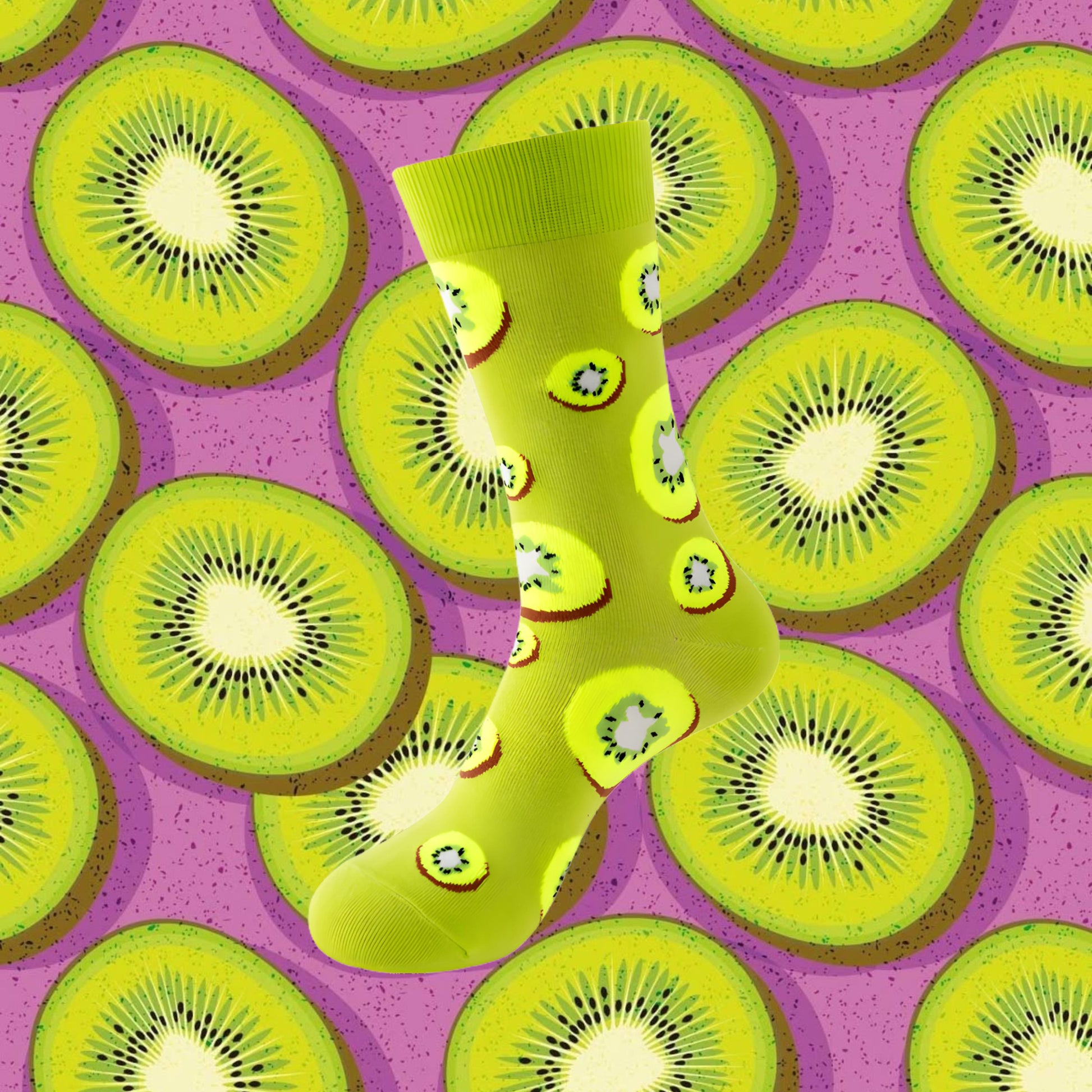 Refresh your footwear with these bold lime-green socks covered in a sweet and tangy kiwi pattern. This tropical-inspired design brings a refreshing burst of energy to your daily outfit