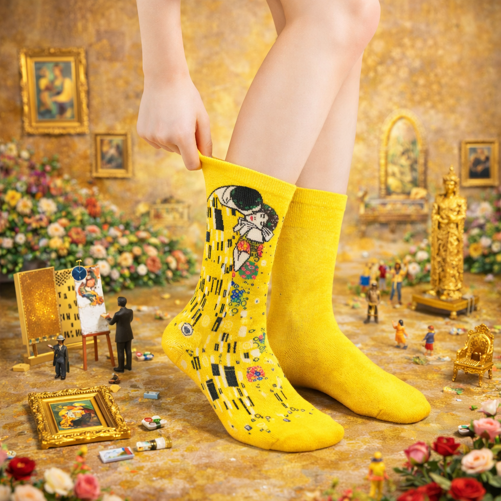 Bring art to your everyday with these socks inspired by Gustav Klimt’s iconic painting The Kiss. Soft and comfortable, they are perfect for showing off your style while keeping your feet cozy. Every step feels like a touch of elegance and romance.